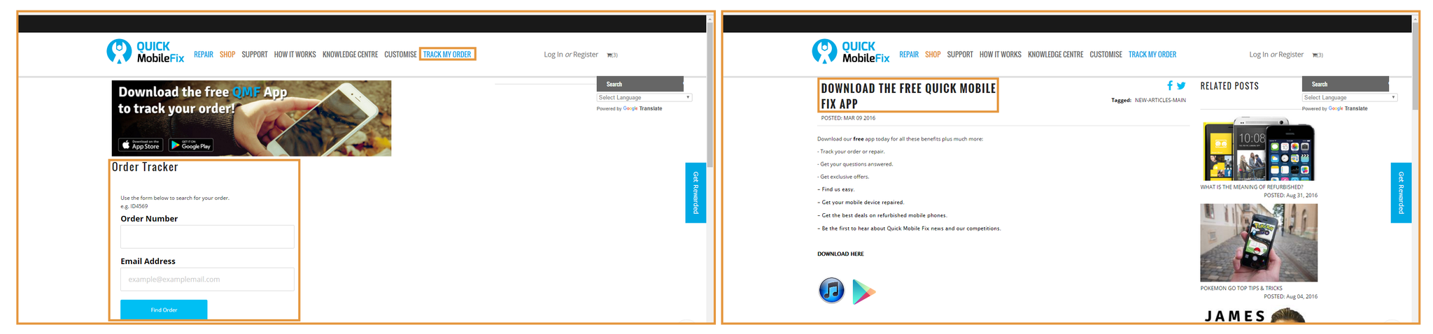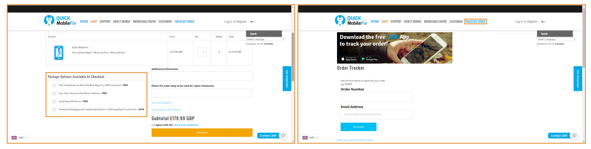 - После того, как вы приобрели что-либо в магазине или в магазине, вы можете отслеживать ваш заказ на каждом этапе, используя нашу ремонт трекера , Просто введите свой адрес электронной почты и идентификатор заказа (указан в вашем электронном письме с подтверждением), чтобы войти и просмотреть ход выполнения заказа Теперь вы можете скачать наши бесплатное приложение отслеживать ваш заказ.